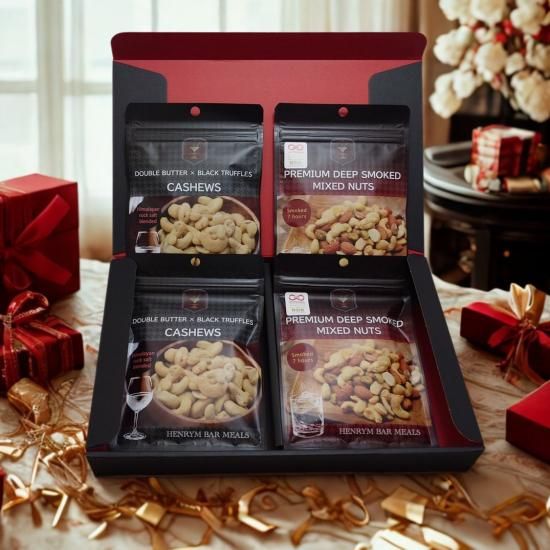 このミックスナッツ燻製 x 黒トリュフ塩カシューナッツ 詰め合わせセットは、贈り物にぴったりな高級感漂うギフトボックス入りです。ミックスナッツ燻製とダブルバター黒トリュフ塩カシューナッツがセットになった、至福の味わいをお届けします。ラッピング済みでプレゼントとしてそのままお渡しいただけます。お酒との相性も抜群で、バーやレストランでお通しやグランドメニューとして愛用されています。
